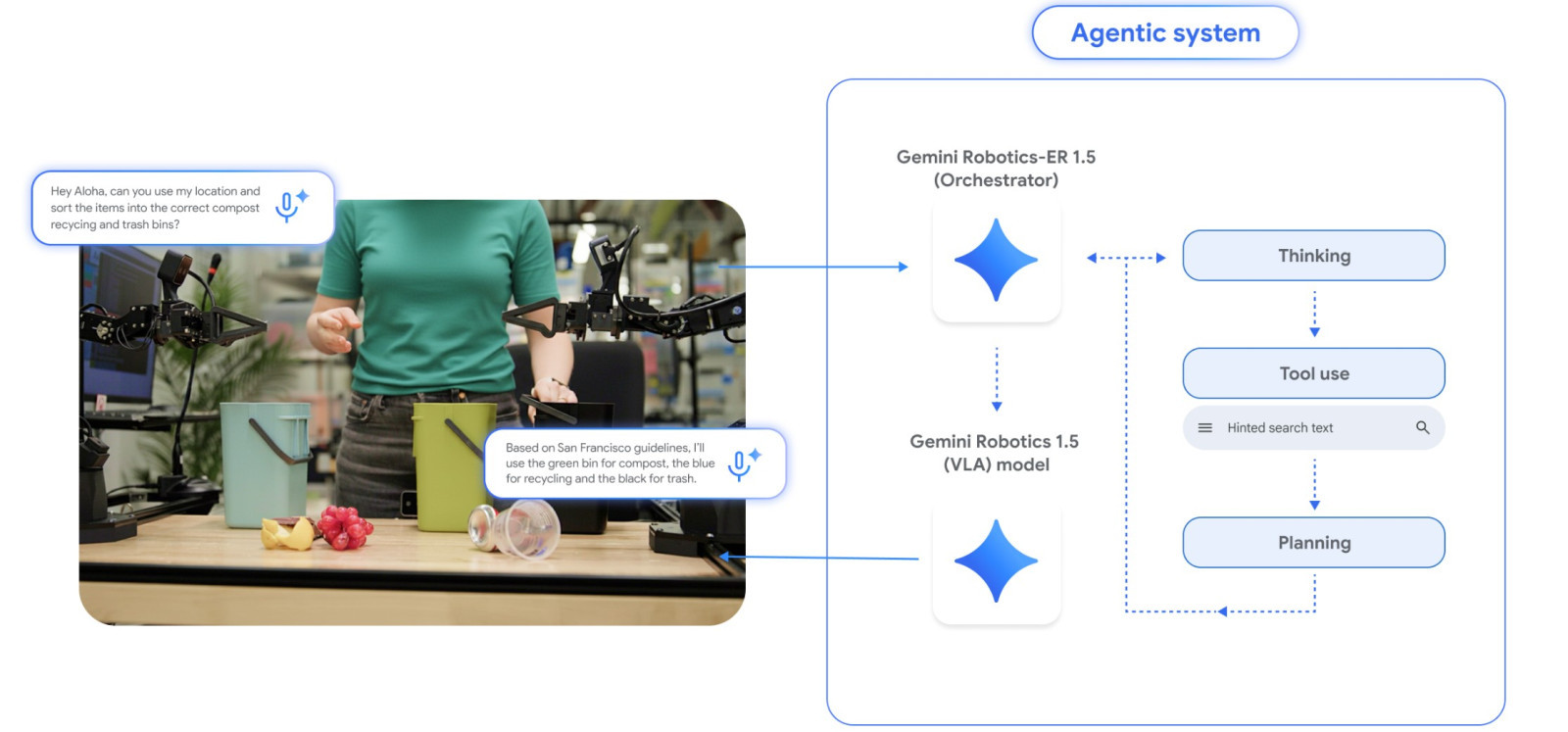 Gemini Robotics-ER 1.5 (Embodied Reasoning): Görsel ve metin girdilerini işleyerek bir görevi tamamlamak için gereken adımları planlıyor. Yani “düşünen” model.