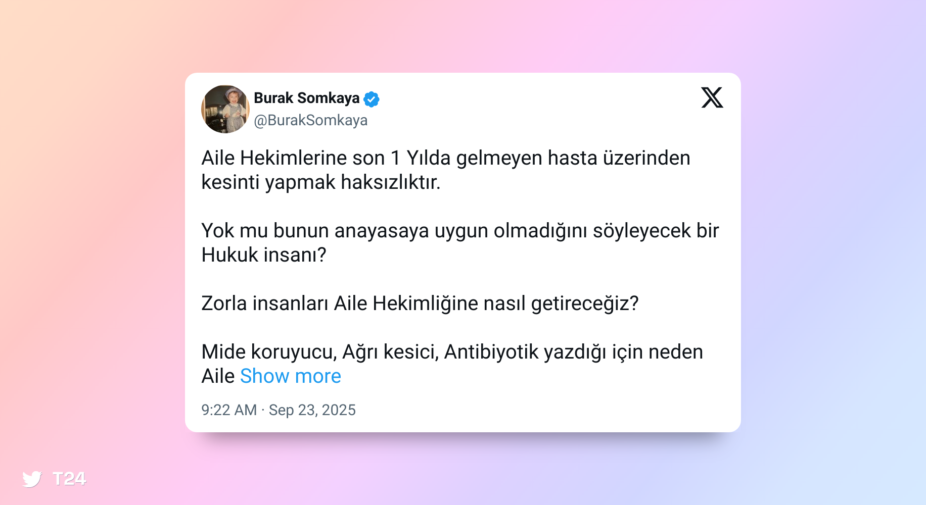 Somkaya, “Her geçen gün aile hekimlerinin kazancını nasıl azaltırız, hangi ödemeleri aile hekimlerine devrederiz hesapları yüzünden sistem işlevsiz hale geliyor. Eğer aile hekimliğini bitirmek istiyorsanız açıkça söyleyin” ifadelerini kullandı.