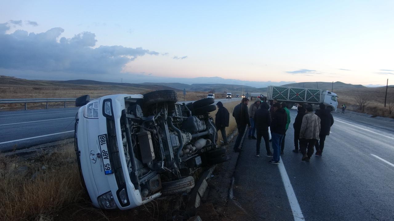 Kaza, saat 07.00 sıralarında Van-Erciş kara yolunun 30’uncu kilometresinde meydana geldi. Erciş’ten Van yönüne giden şoförü ve plakası belirlenemeyen tır, yoldaki buzlanma nedeniyle sürücüsünün kontrolünden çıkarak, refüje çarptı. Arkadan gelen 2’si tır, 5 araç da duramayınca zincirleme kaza yaşandı.
